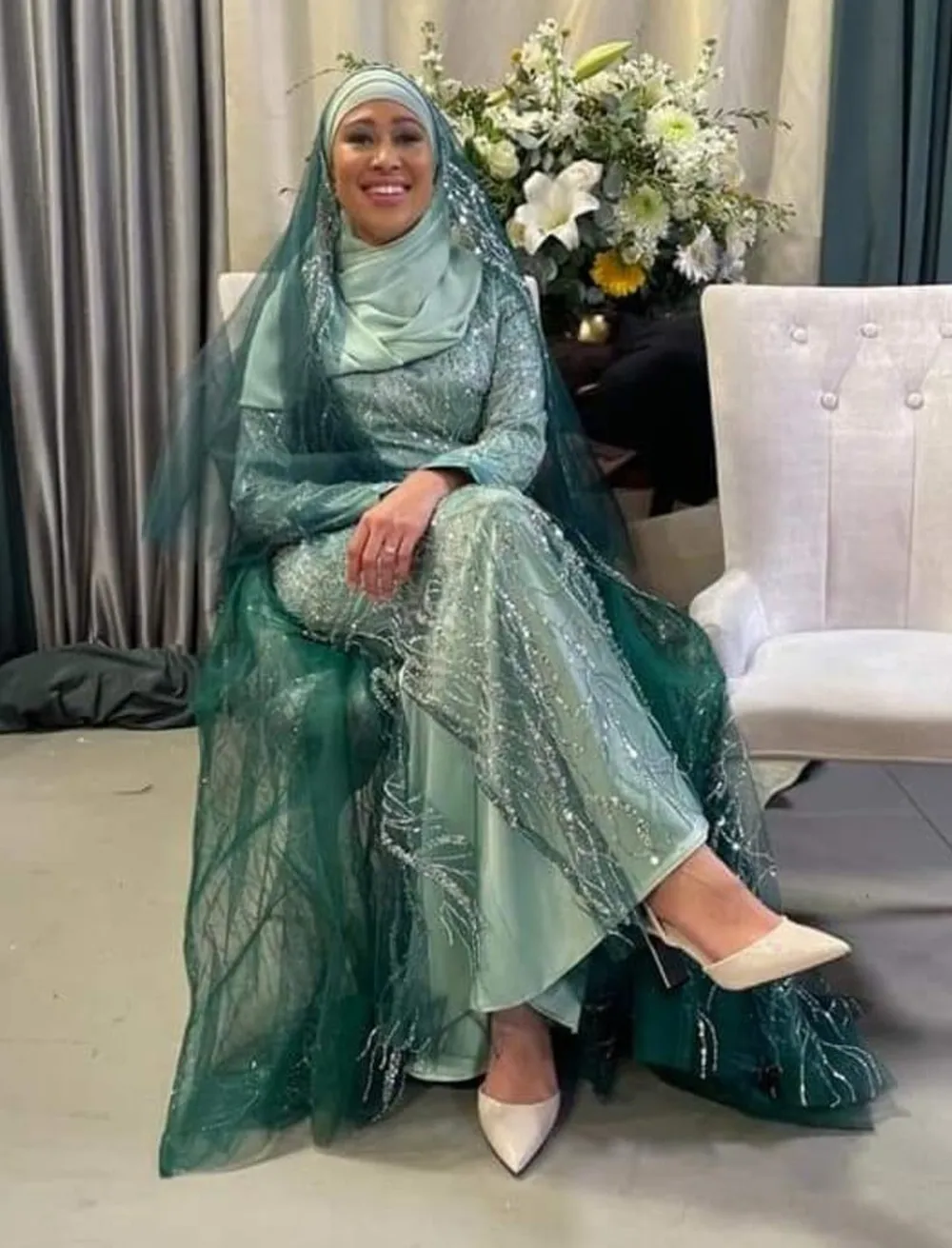 The bridal pair looked dazzling as Kaashie wore a glittery green dress and scarf with sparkling embroidery while Fiekie looked uitspatlik in a shiny beige shalwar kameez and turban.