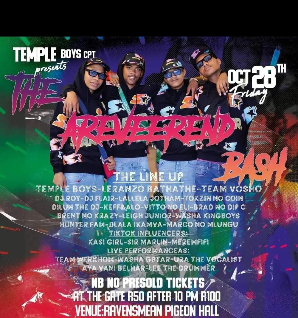 The Temple Boys return to Enigma Lounge in Eerste River with Tyrone Paulsen for the month-end madness. Supported by DJ Rello SA, DJ GeeQ and DJ Robin. Cover charge is R50. No under 18s. Doors open at 7pm.