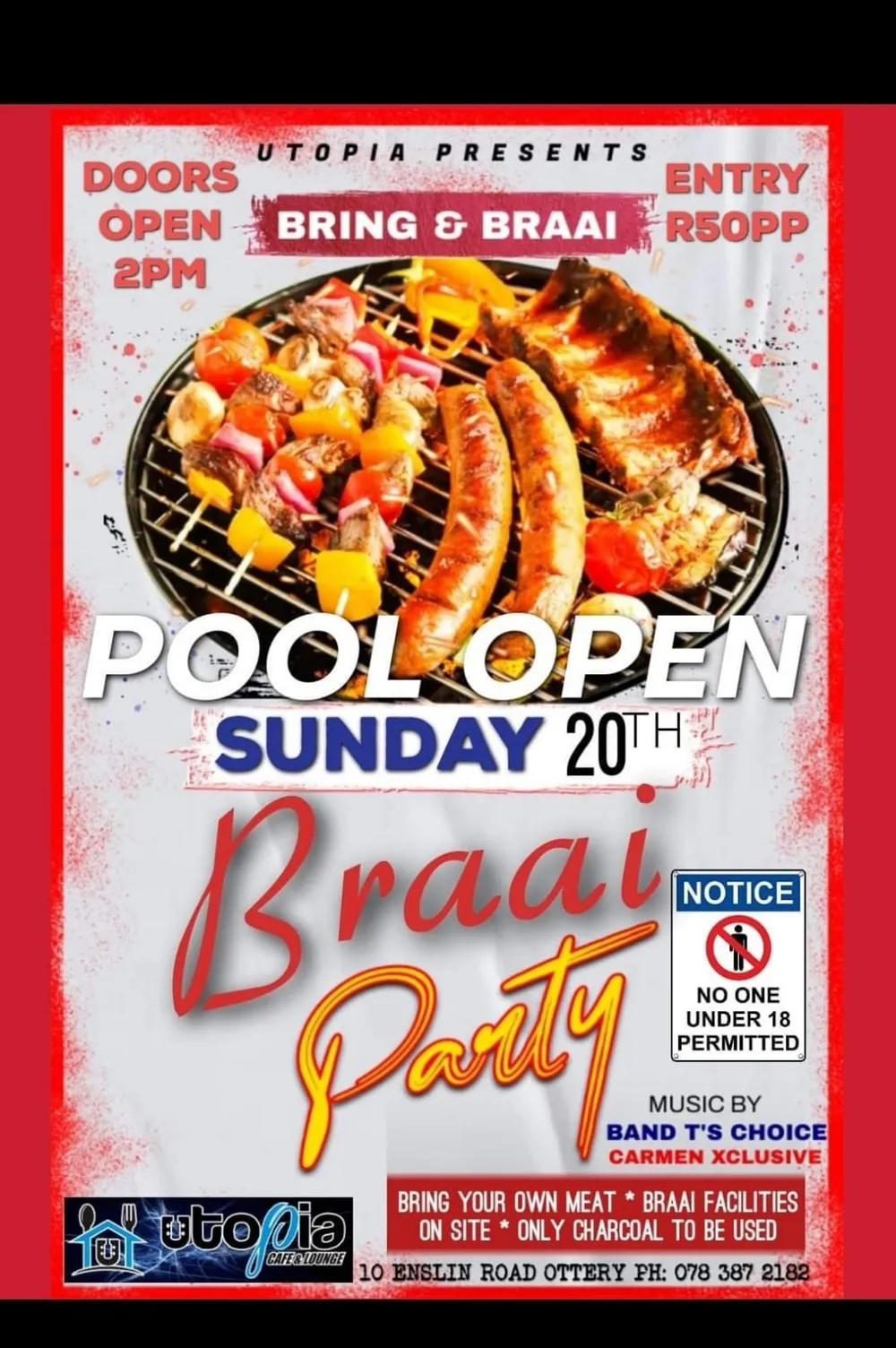 Grab your bikinis for a bring pool party on Sunday. Utopia Cafe and Lounge presents a bring and braai and the opening of the swimming pool.