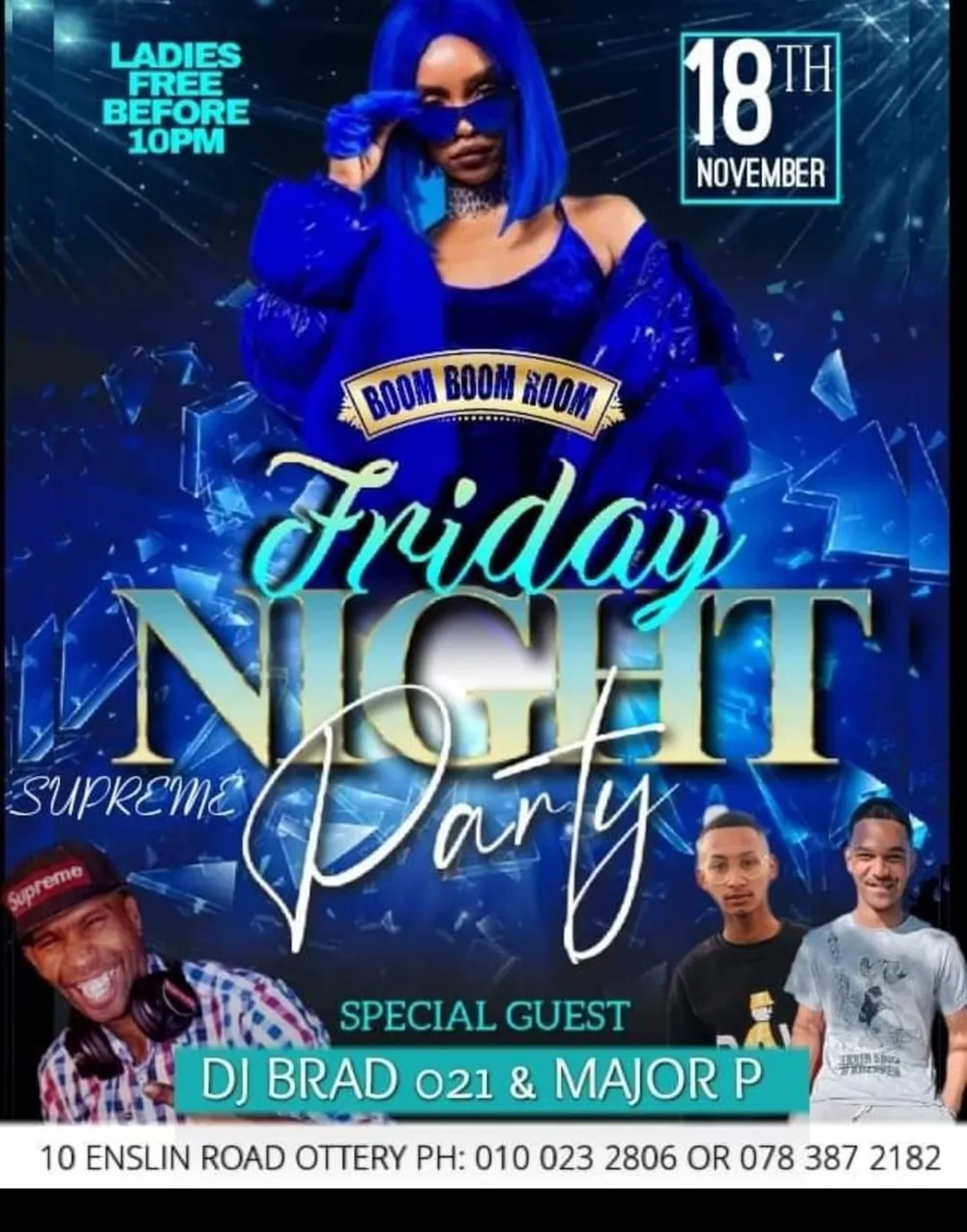 Friday night is ladies night, so gather the girls and head to Utopia Cafe and Lounge for Friday Night Supreme Party featuring special guest DJ Brad 021and Major P. Ladies enter free before 10pm. For bookings contact 0100232806/0783872182.
