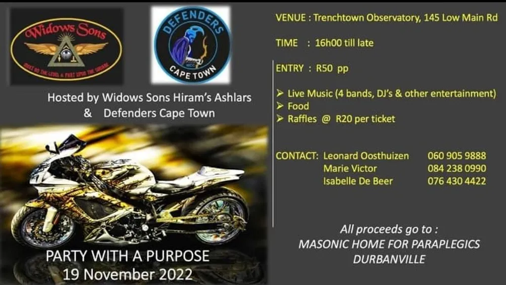Party with a purpose at Trenchtown Observatory on Saturday, a live music event in aid of The Masonic Home for Paraplegics in Durbanville.
