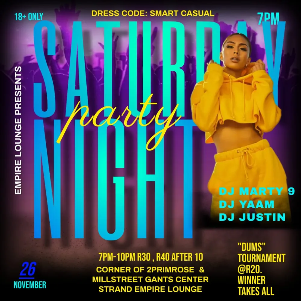 Empire Lounge in Strand Presents a Domino Tournament hosted by DJ Justin with some awesome djs spinning party tunes on Saturday.