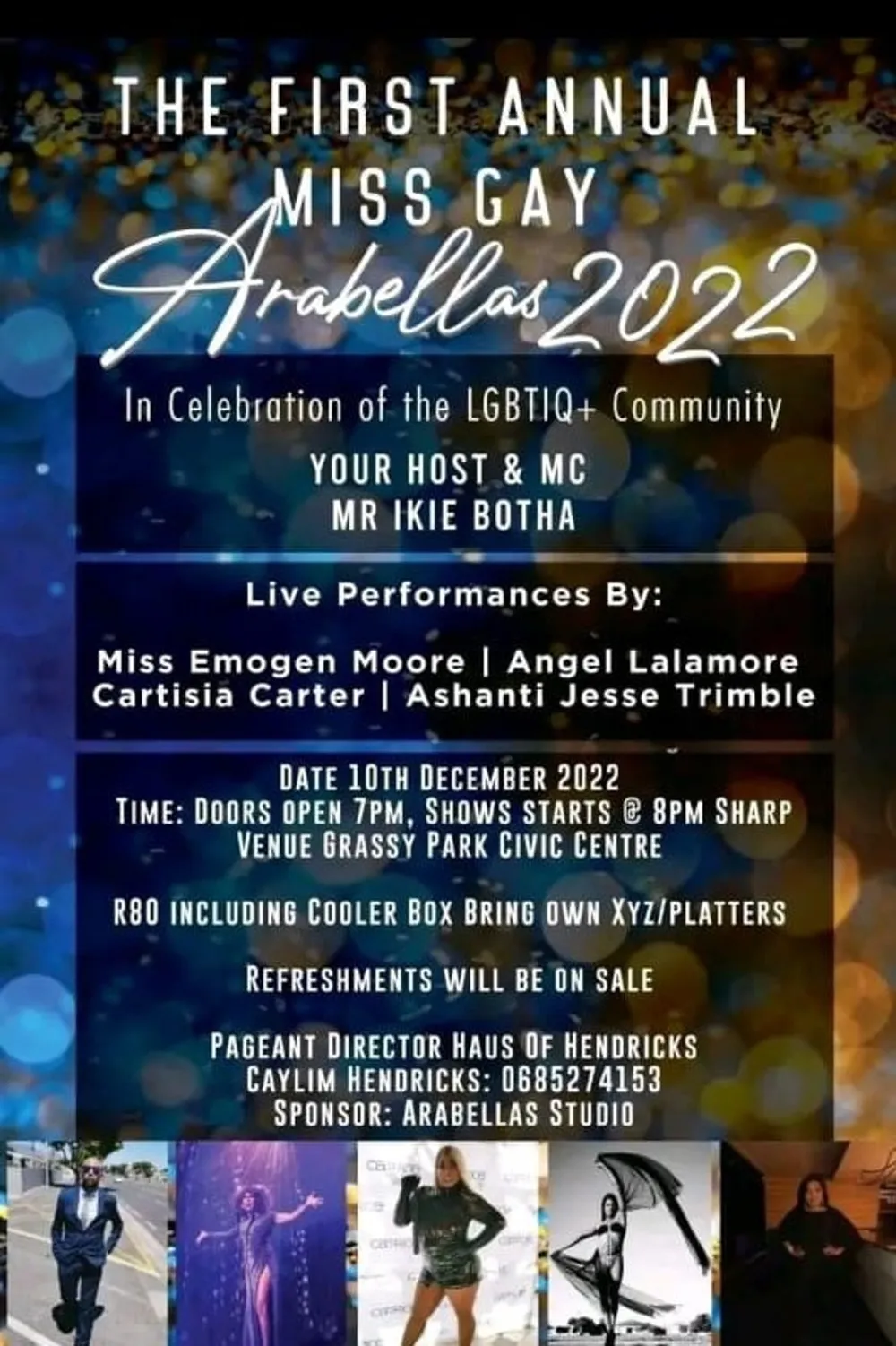 Presenting the first annual Miss Gay Arabella 2022 in celebration of the LGBTQIA+ community. Stiek uit at Grassy Park Civic Centre. Entry is R80 including cooler box, bring own XYZ and platters. Refreshments will be on stale.