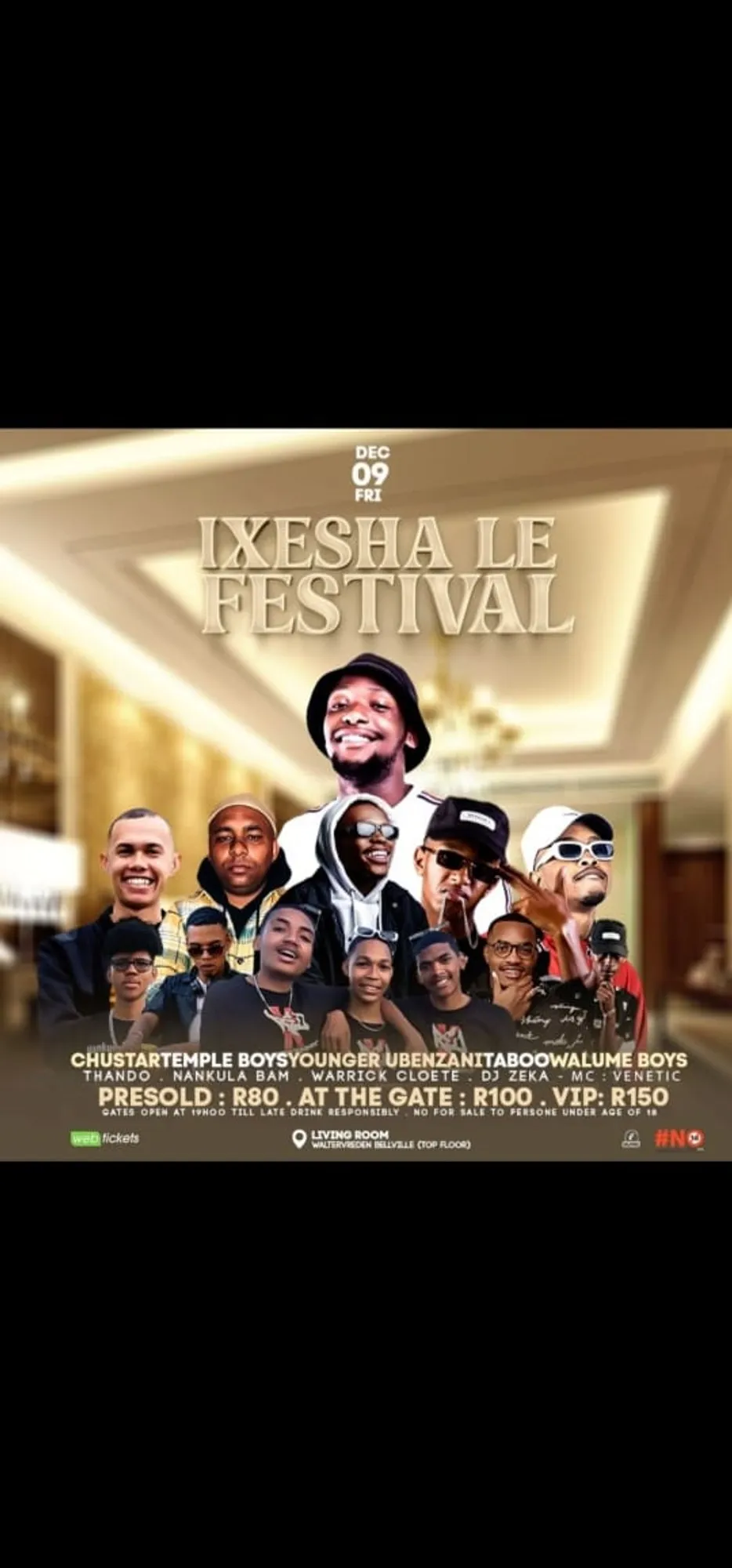 Living Room in Bellville hosts The Temple Boys on Saturday night alongside loads of talented Djs, including Chustar, Taboo and Walume Boys. Doors open at 7pm. Pre-sold tickets at R80. R100 at the gate and R150 for VIP tickets.