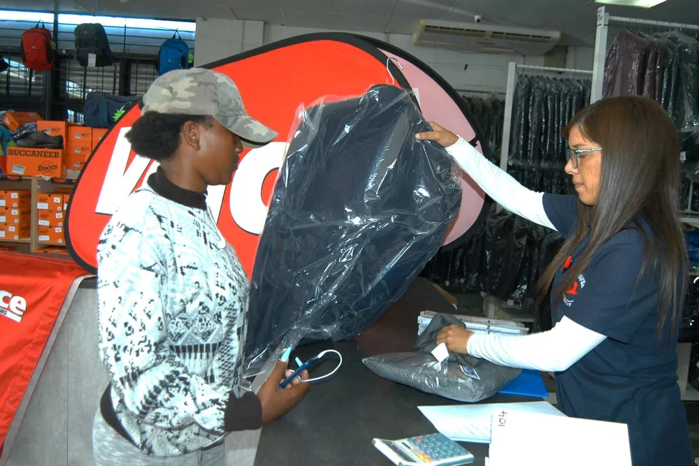 “So we were able to help them with bags, shoes, blazers, shirts as well as dresses and tracksuits for various schools.”