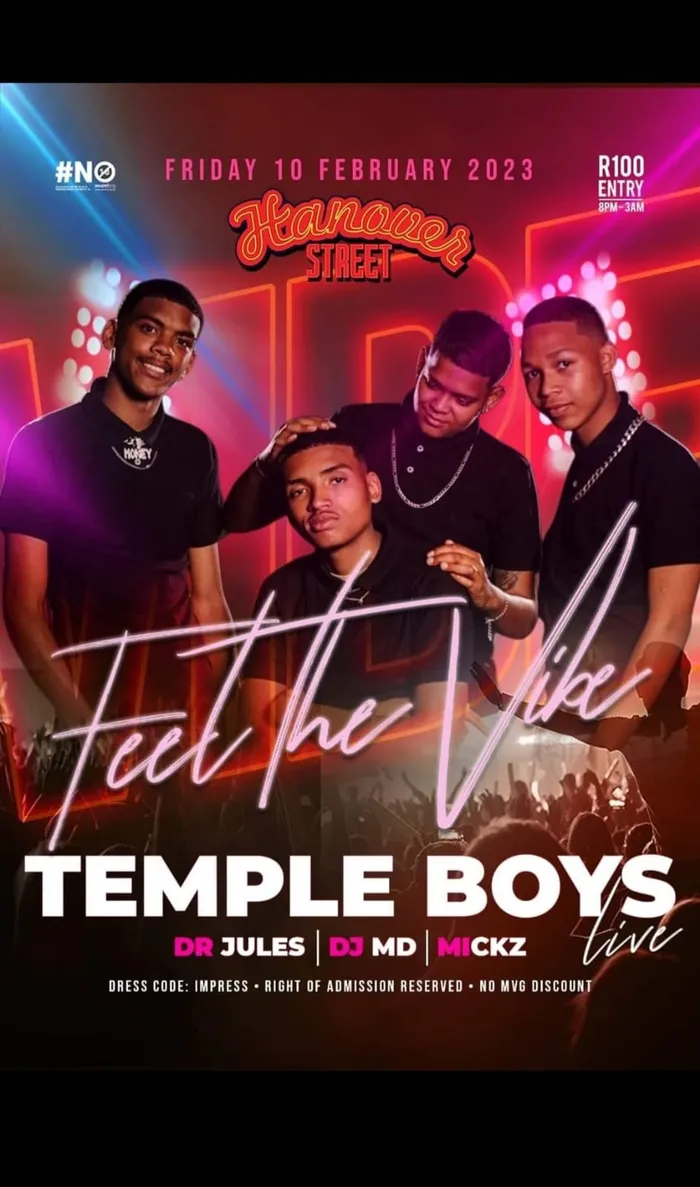 Catch the Temple Boys at Hanover Street on Friday featuring DJ Jules, DJ MD and Micks. R100 gets you inside. The fun starts from 8pm.