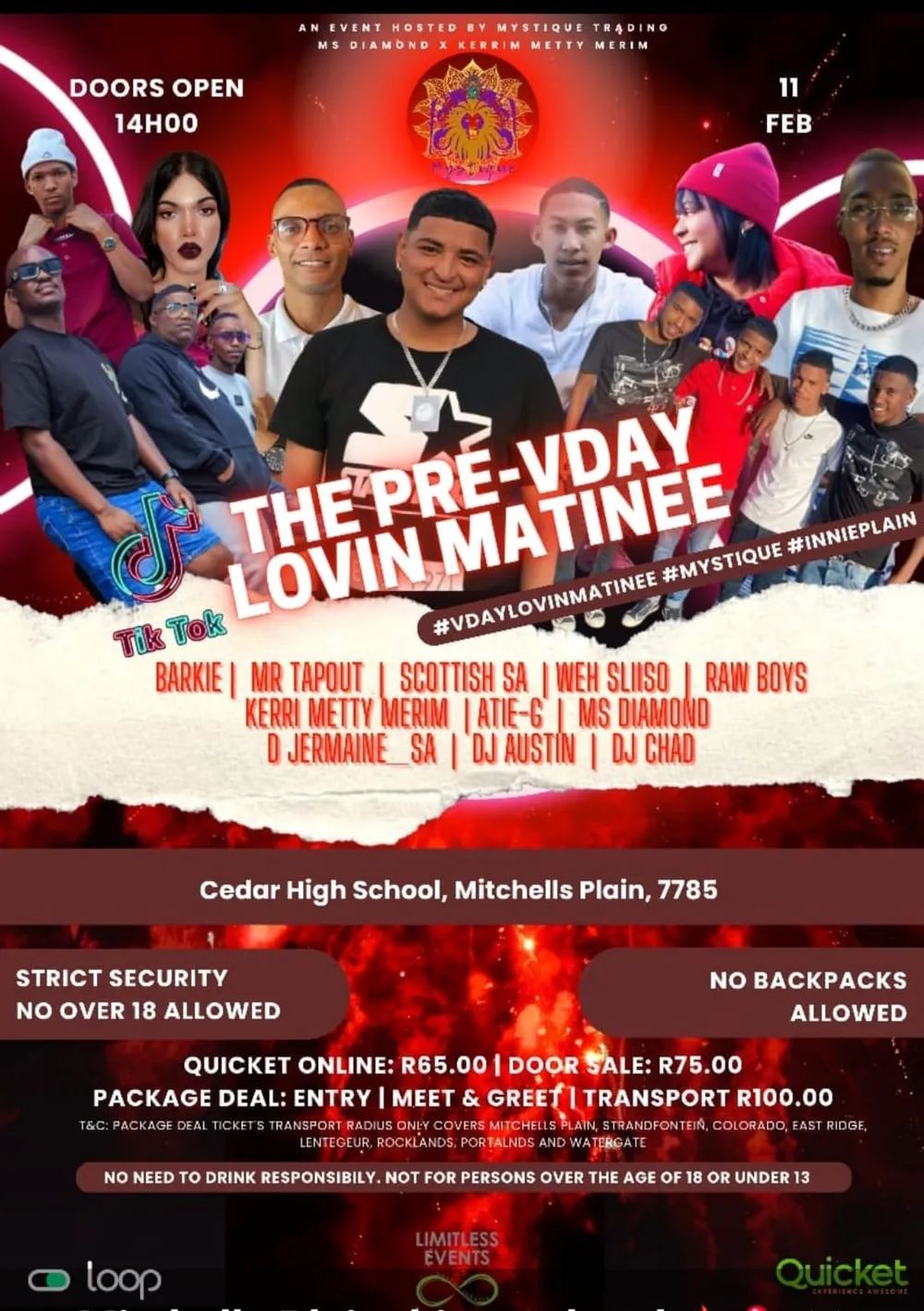 Introducing the pre-Vday loving matinee at Cedar High in Mitchells Plain featuring Atie G, Barkie, Mr Tapout, Weh Sliso, DJ Chad and more.