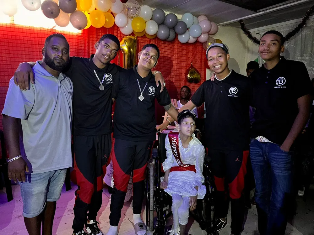 “When the Temple Boys arrived, the people were very excited and were shouting for them. They couldn’t stay long because they were on their way to another gig, but they came to take a few pictures with her and wish her a happy birthday.