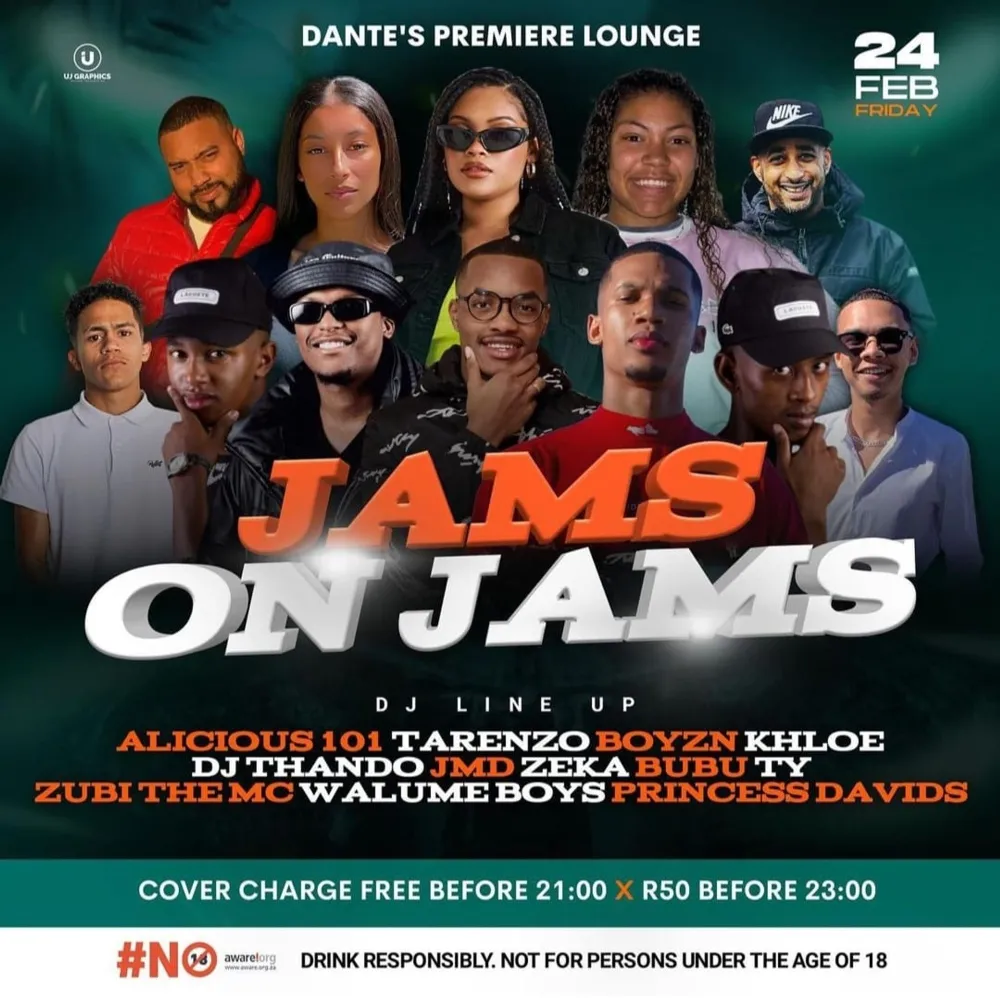 It’s Jams on Jams at Dante’s Premier Lounge featuring Alicious 101, Tarenzo, Boyzn, Bubu, Princess Davids and more. Entry is free before 9pm and R50 before 11pm.