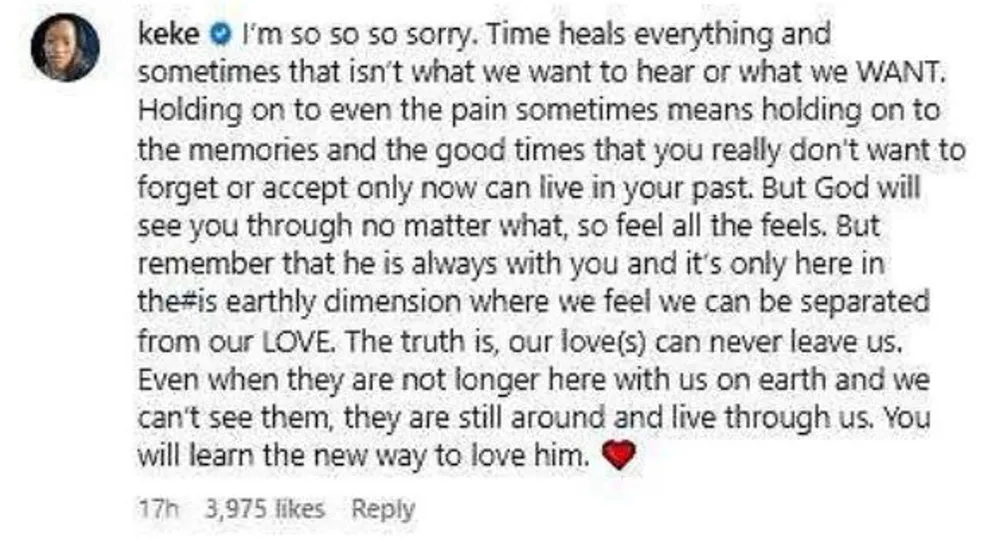 Her latest post has, however, caught the global attention of American actress Keke Palmer, who took to the comments to offer Bragga support and words of wisdom.