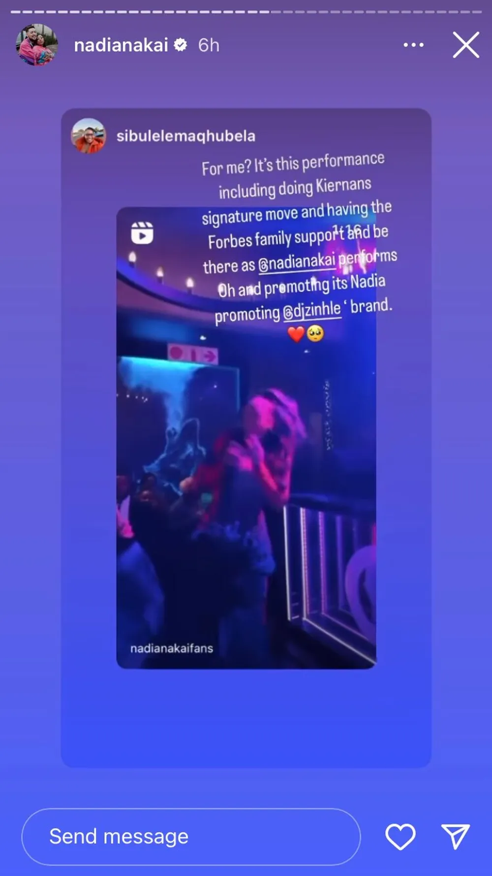 Nakai on her Instagram stories has been sharing moments from her performance and some of the videos she is being tagged in.