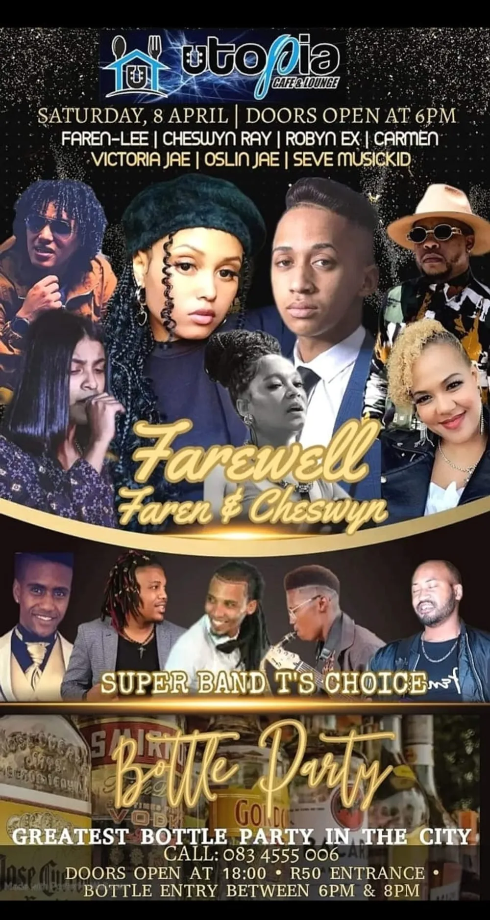 Join Faren, Cheswyn and friends as they bid farewell this Saturday with an amazing show of live vocals.