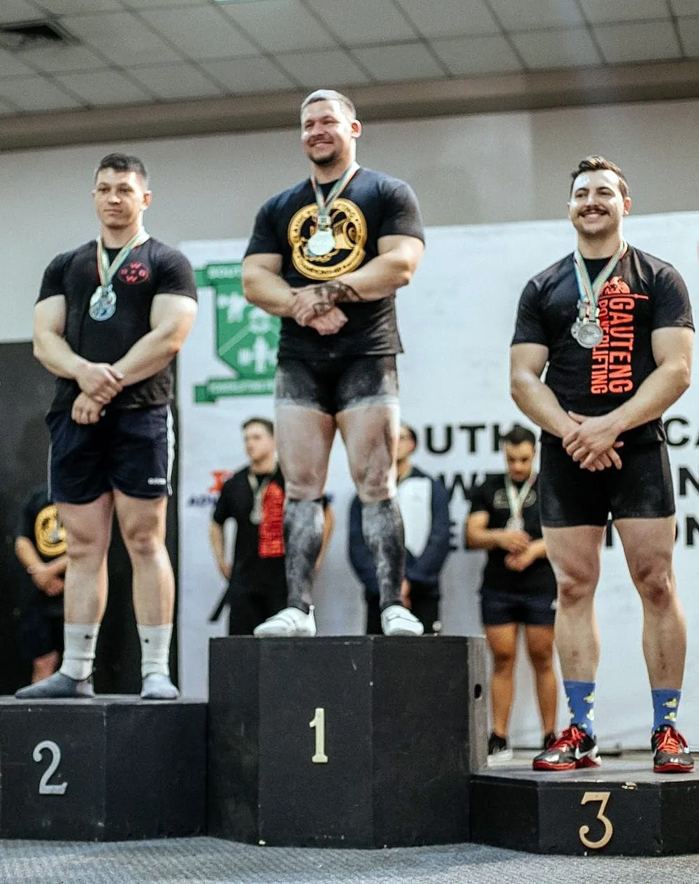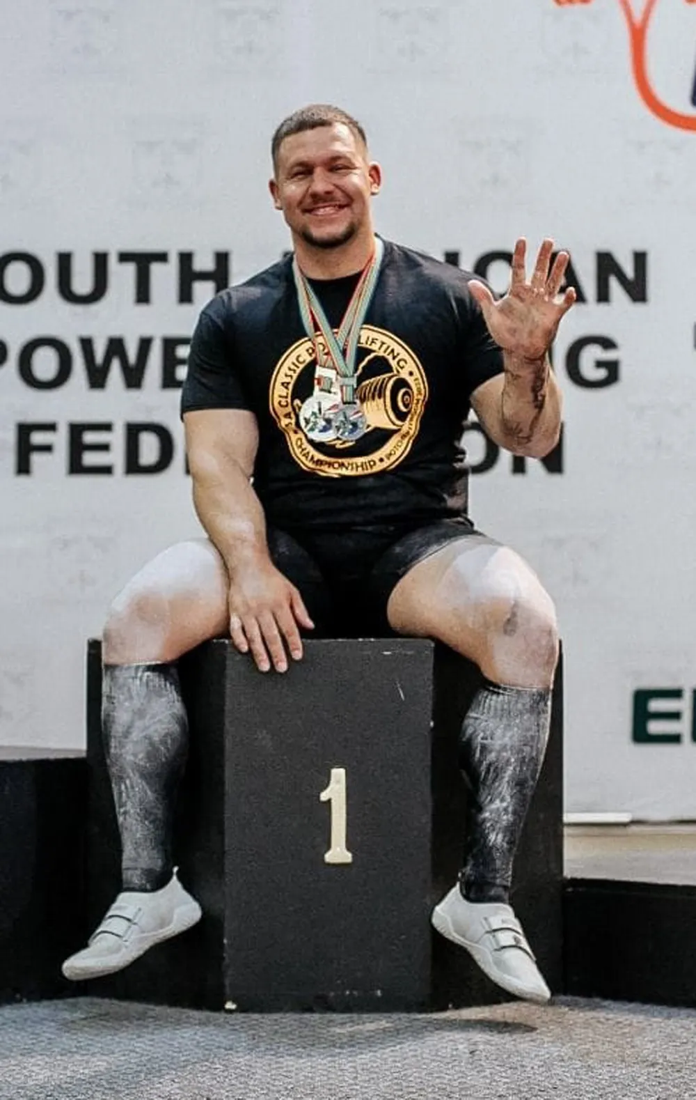 “I also hold the highest ever recorded bench press in SA history at 205.5kg as a 105kg lifter, and I hold the highest registered powerlifting history at 788kg, squat bench and deadlift combined.