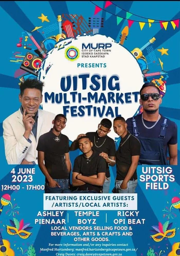 The fun event is open to almal and takes place at Uitsig Sports Field with headline acts the Temple Boys, Ricky Opi Beat and Ashley Pienaar on the stage.