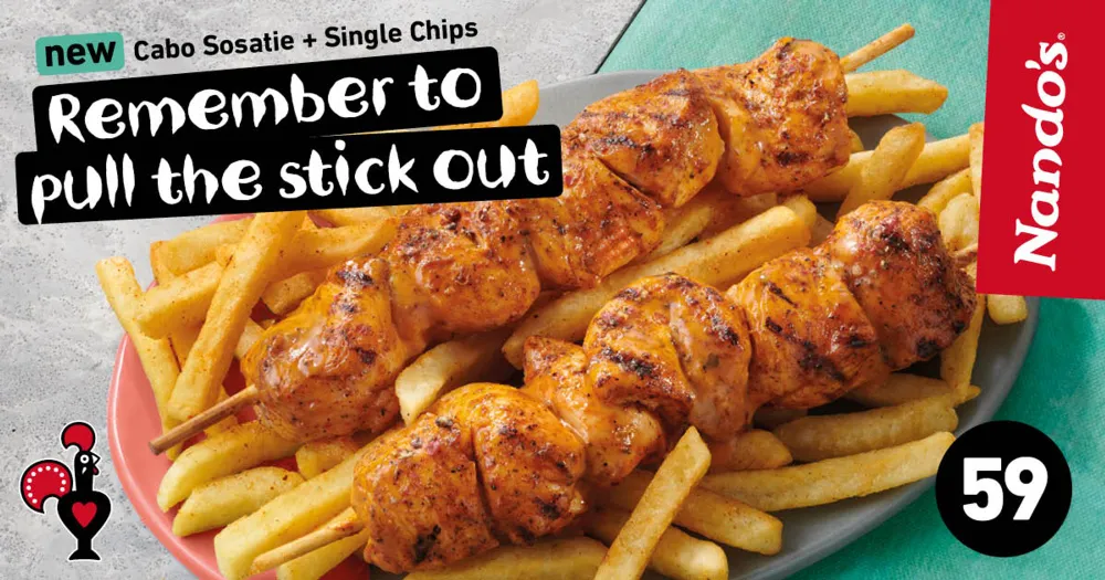 Offering Mzansi an old favourite with a unique new Nando’s twist to be enjoyed by aboSticks ekasi and Nikita in Stellies, the sosatie is a South African classic meal at a classic price – just R59.