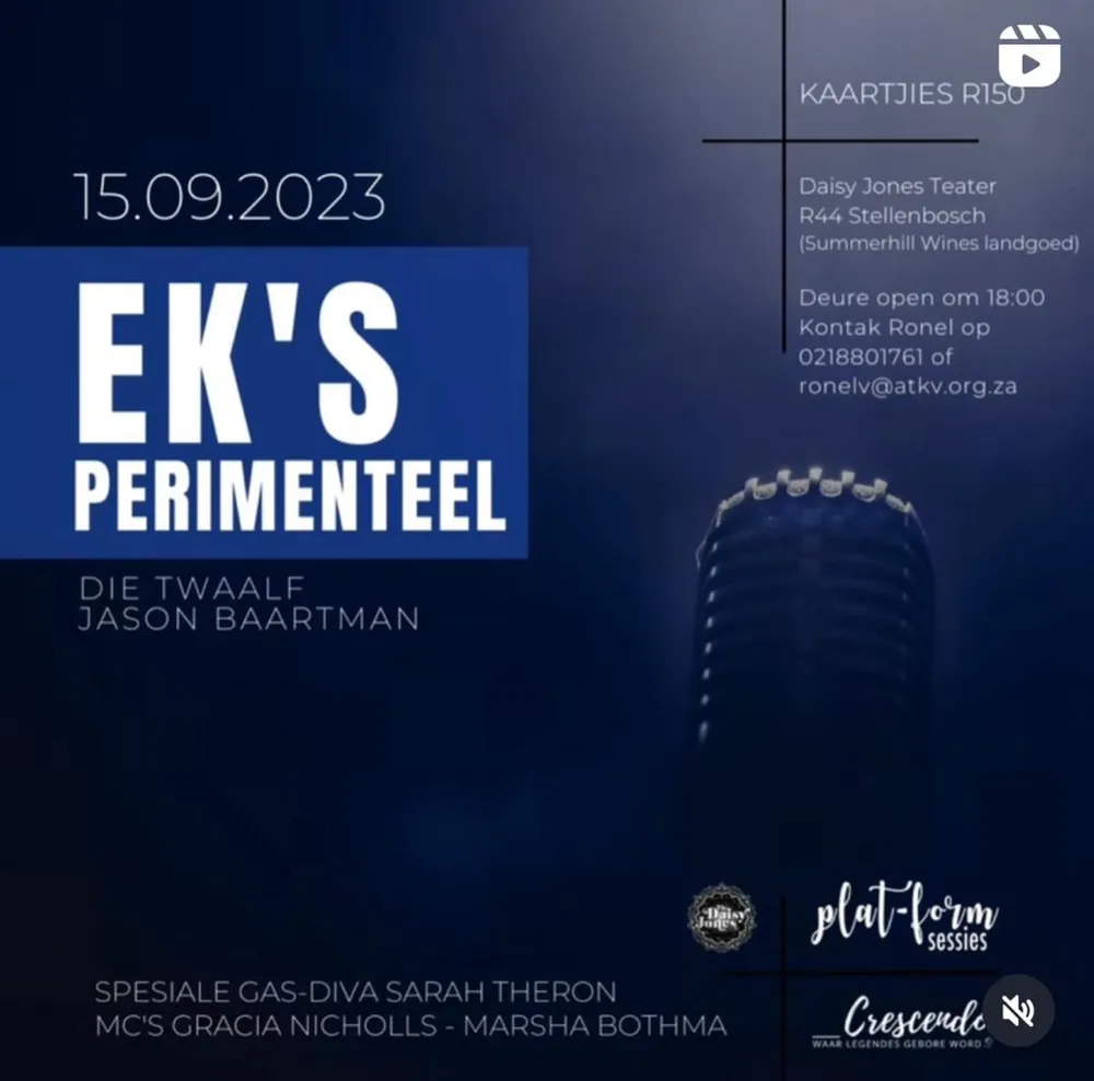 In honour of Heritage Month the ATKV Crescendo finalists will take to the stage with iconic Sarah Theron making a special appearance. Headlining the show tonight are Jason Baartman and Die Twaalf (Kurt-Lee Hammond), who both made it to the finals of this year’s ATKV Mentor Programme. All happening at The Daisy Jones Bar in Stellenbosch. Doors open at 6pm.