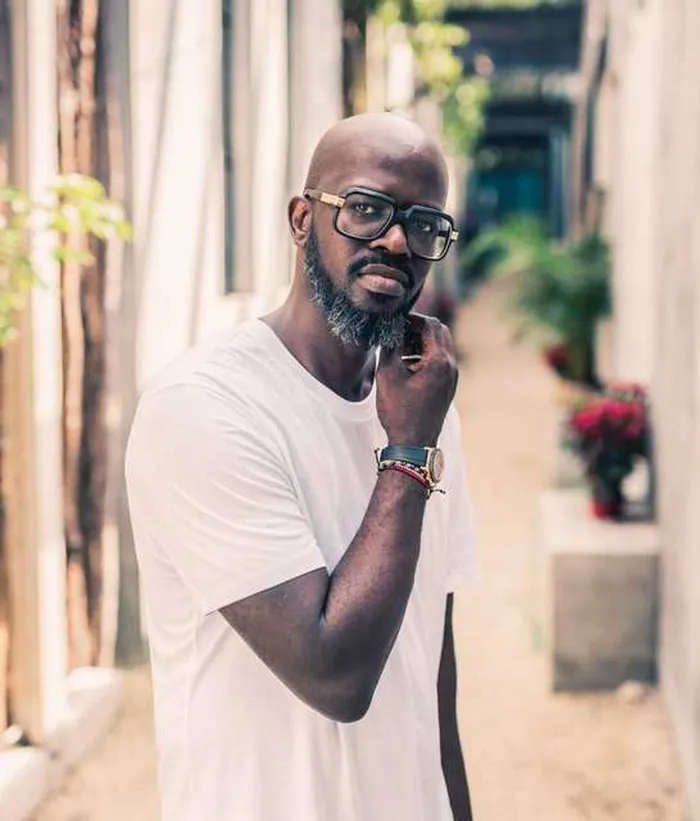 Black Coffee, 47, known for his impeccable taste in klere, combined an off-white Amiri outfit, which featured prentjies of African women on it, with green and white Louis Vuitton takkies.