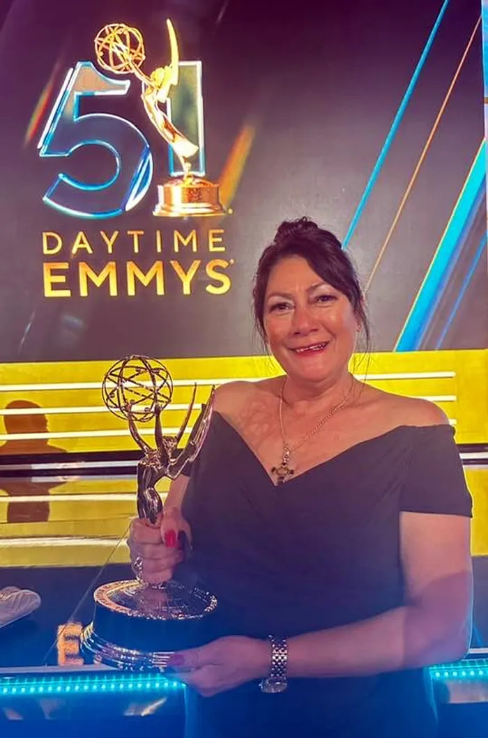 Winner: Gale Shepherd with her Emmy Award. Picture: Facebook