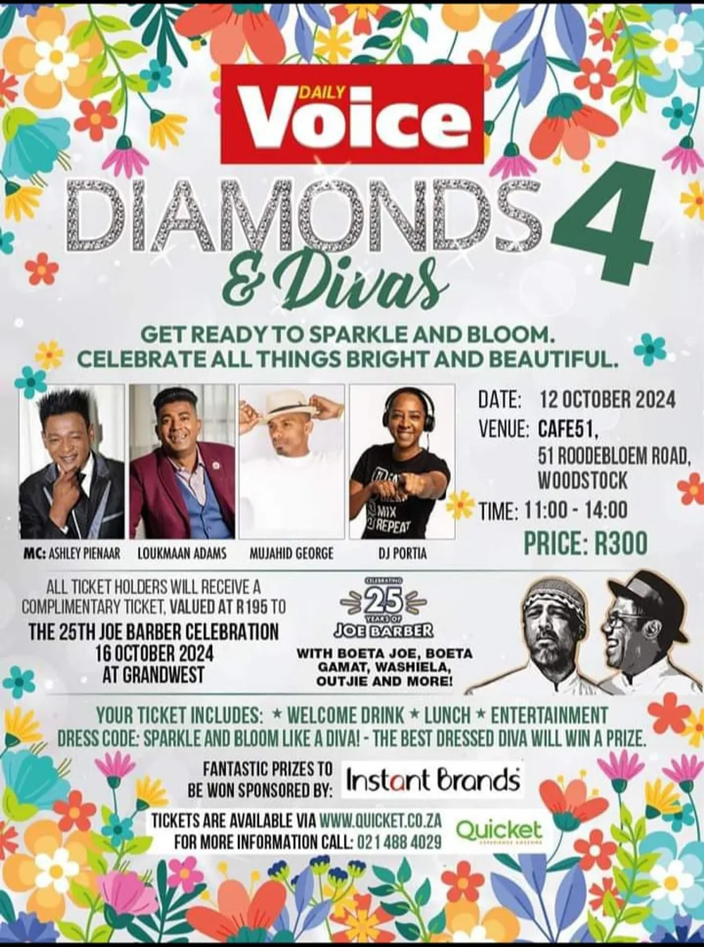 So diva’s don’t miss out on this amazing afternoon brought to you by the Daily Voice, get your tickets now.