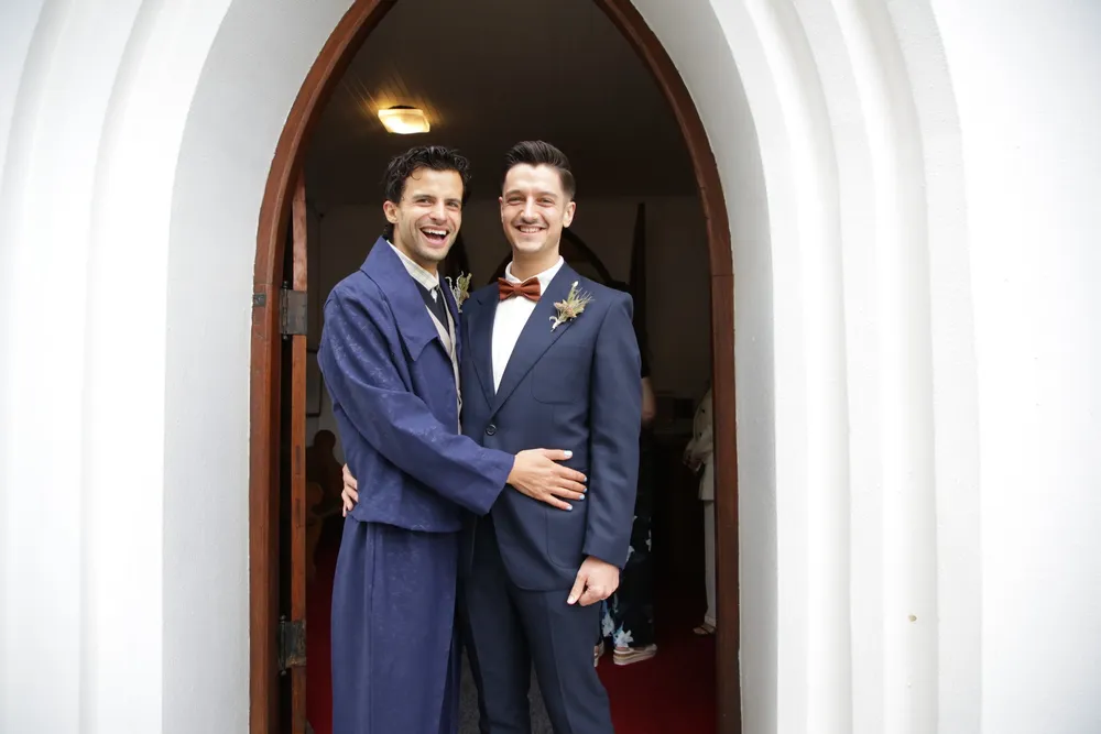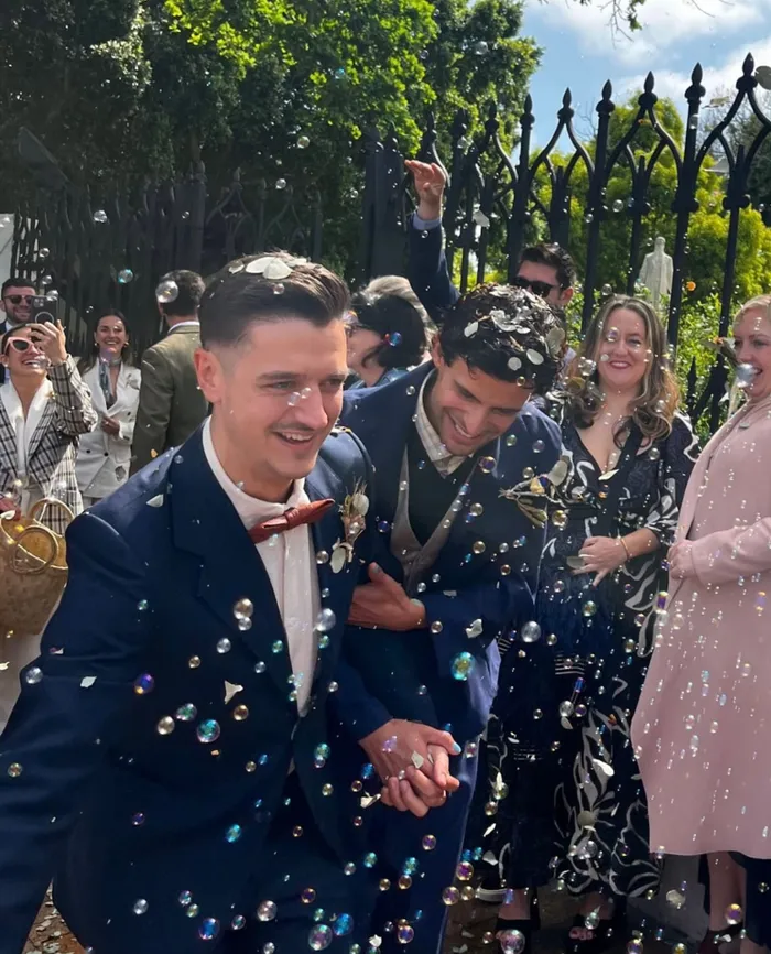 The loving grooms got married at the NG Moederkerk in Stellenbosch and had their reception at KleinBlouKlip Farm outside Stellenbosch with 170 guests.