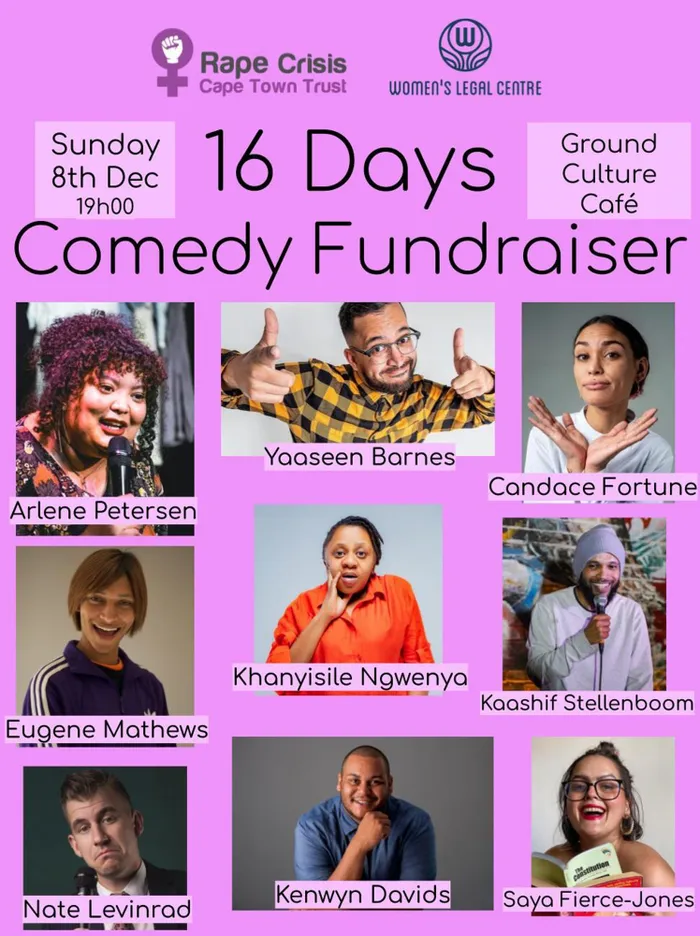 All funds raised by the comedy show will be donated to the Rape Crisis Cape Town Trust and the Women’s Legal Centre.