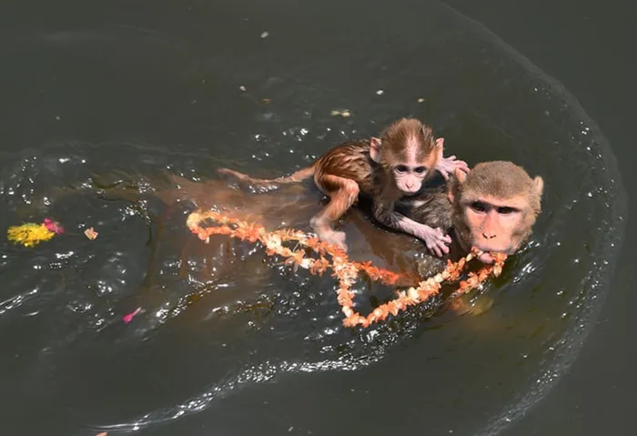 Monkey swim in Mathura