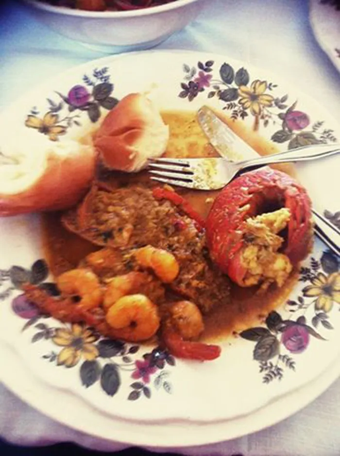 Now add all the crayfish, stir the pot, add 3 cups of hot water and cook on medium to high heat for 15 mins, stirring occasionally. Bring heat down to medium and simmer for 10 mins.