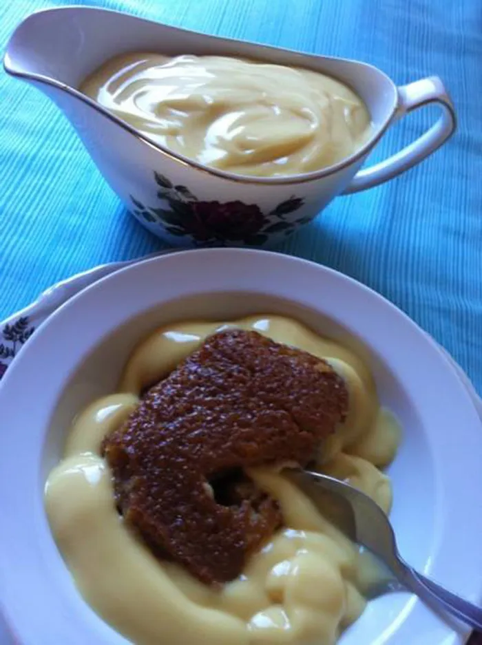 When your cake is done take out of oven and immediately pour over all the warm sauce – it will bubble and that’s what you want – it will be a bit wet and that’s how a malva pudding should be – it’s not a dry cake .