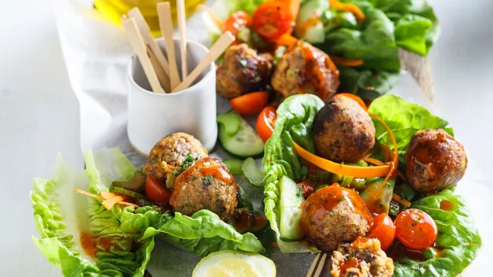 Squeeze half the lemon wedges over the pilchard meatballs.