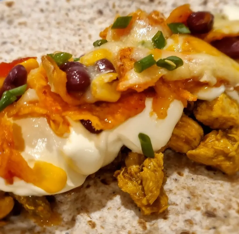 Add sour cream and smashed avo, sweet chilli sauce and cheese.