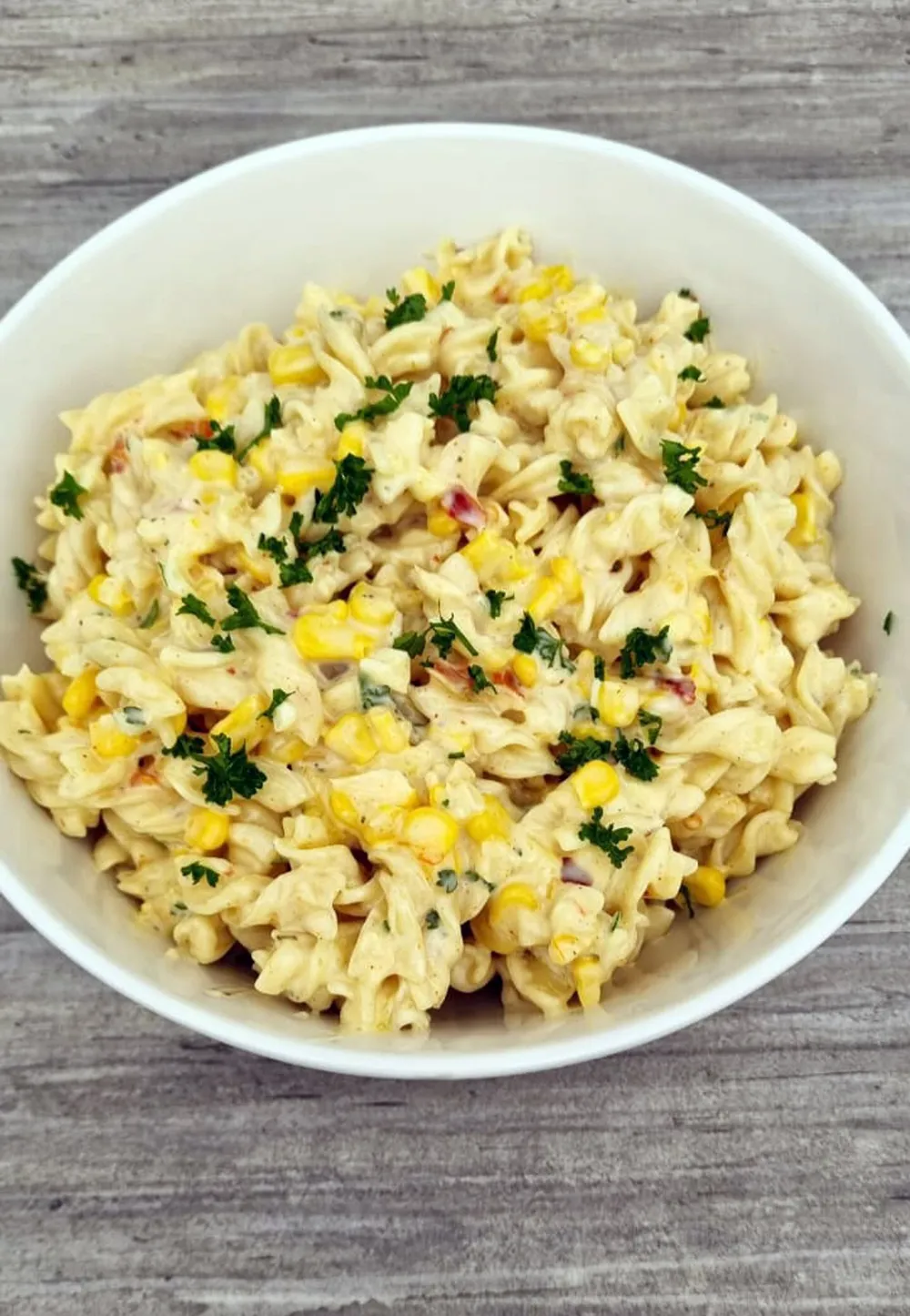 Add all the ingredients to a large bowl and mix until well combined. Garnish with fresh parsley.