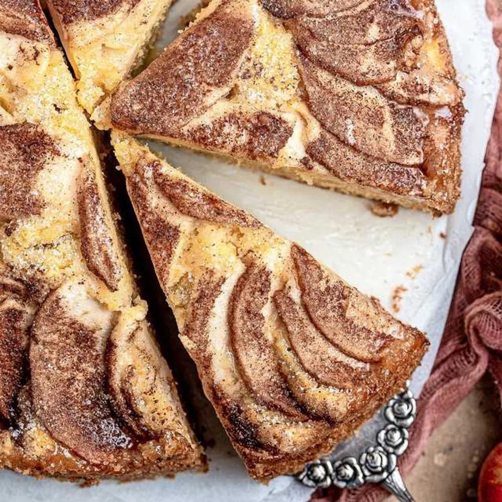 Add the drained apples to the batter and add a sprinkle of cinnamon.