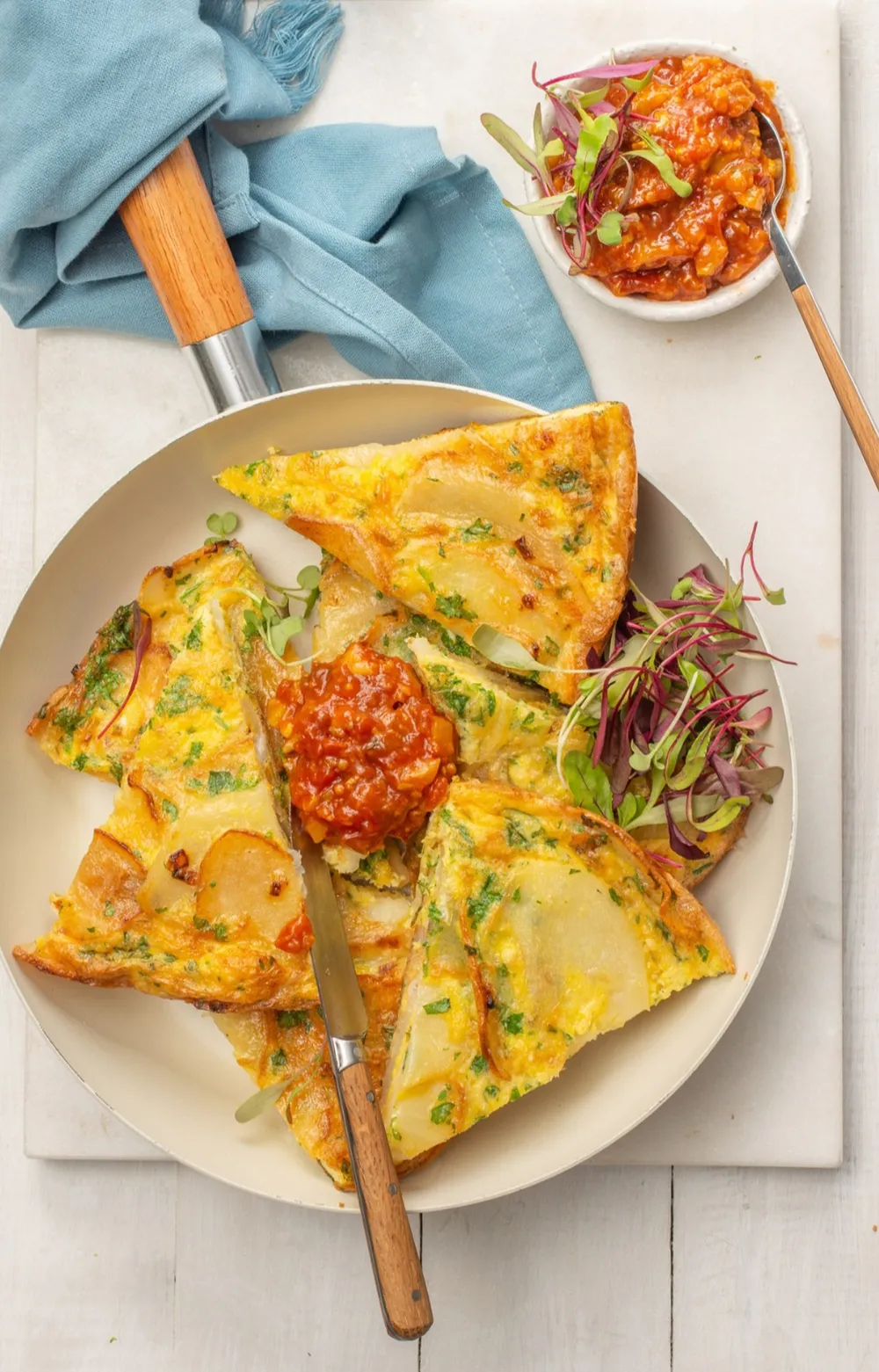 Pour the egg and potato mixture into the frying pan and fry for about 10-12 minutes or until half cooked (the top will still be a bit wobbly).