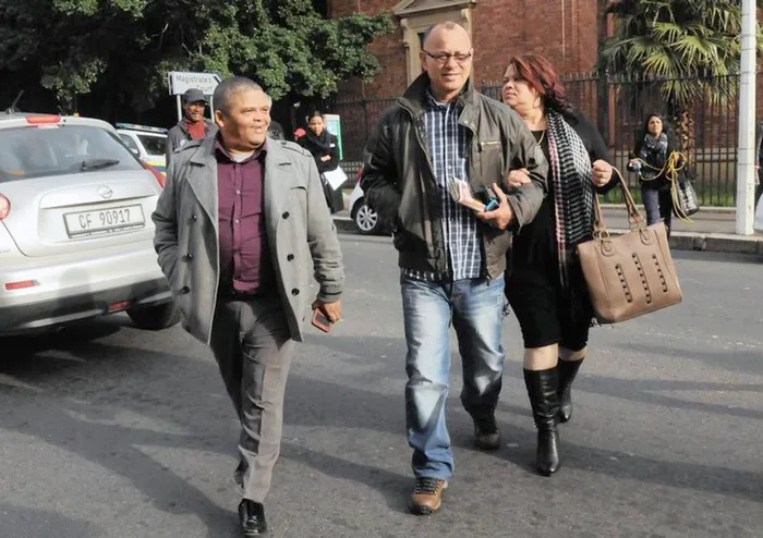 AT COURT: Rashied Staggie flanked by friend Ivan Waldeck and wife Rashieda. CREDIT: Patrick Louw AT COURT: Rashied Staggie flanked by friend Ivan Waldeck and wife Rashieda. CREDIT: Patrick Louw