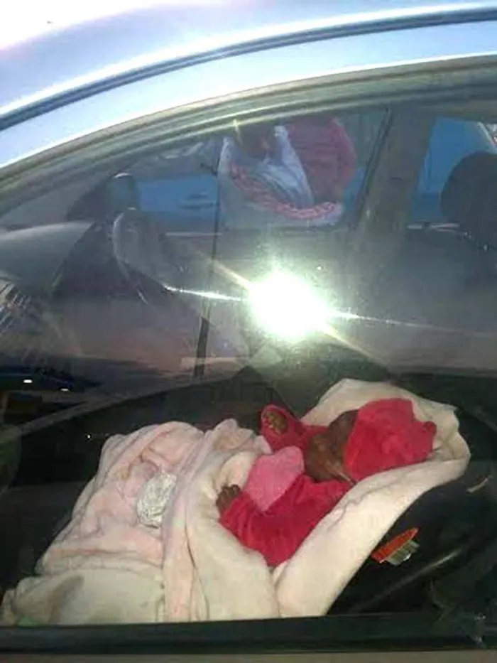 An upset shopper, who called the police, posted photos of the baby in the locked car on the Eerste River/Blue Downs/Kleinvlei/Wesbank-group on Facebook, writing: “This lady left her baby in the car at Blue Downs [mall] for more than an hour.
