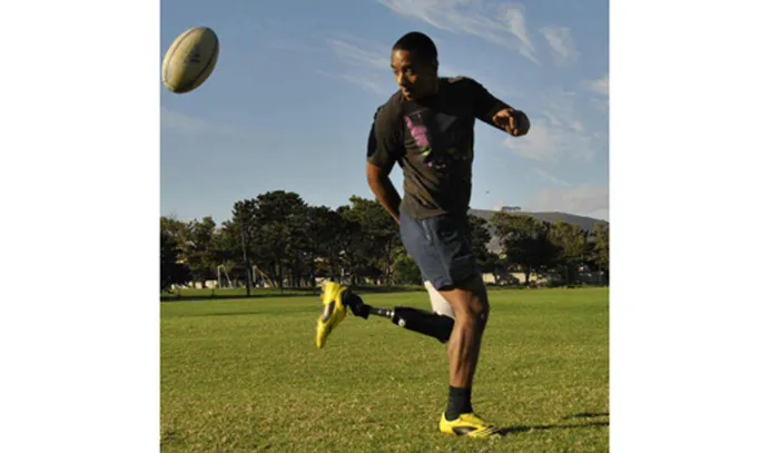 ON THE BALL: Ridhaa Davids, 26, plays rugby with prosthesis. CREDIT: Ayanda Ndamane ON THE BALL: Ridhaa Davids, 26, plays rugby with prosthesis. CREDIT: Ayanda Ndamane