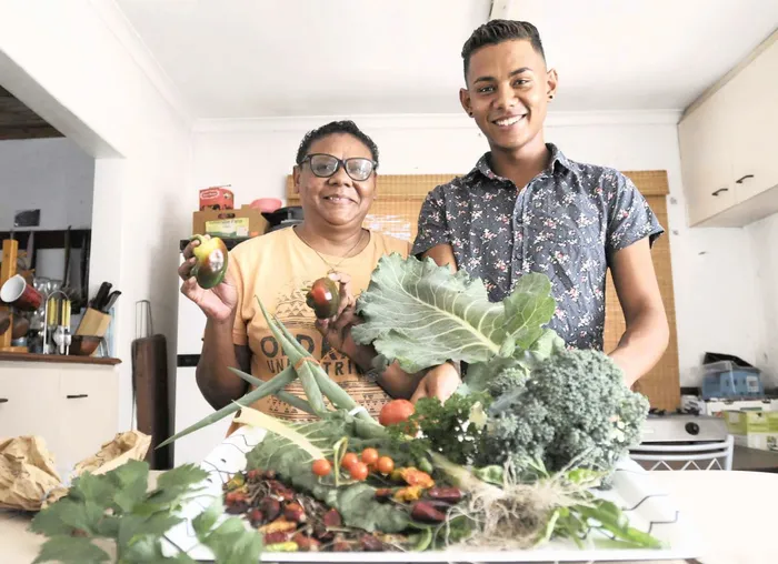HEALTHY CROP: Julia and her son, Charlton, show off their yield. CREDIT: Bertram Malgas HEALTHY CROP: Julia and her son, Charlton, show off their yield. CREDIT: Bertram Malgas