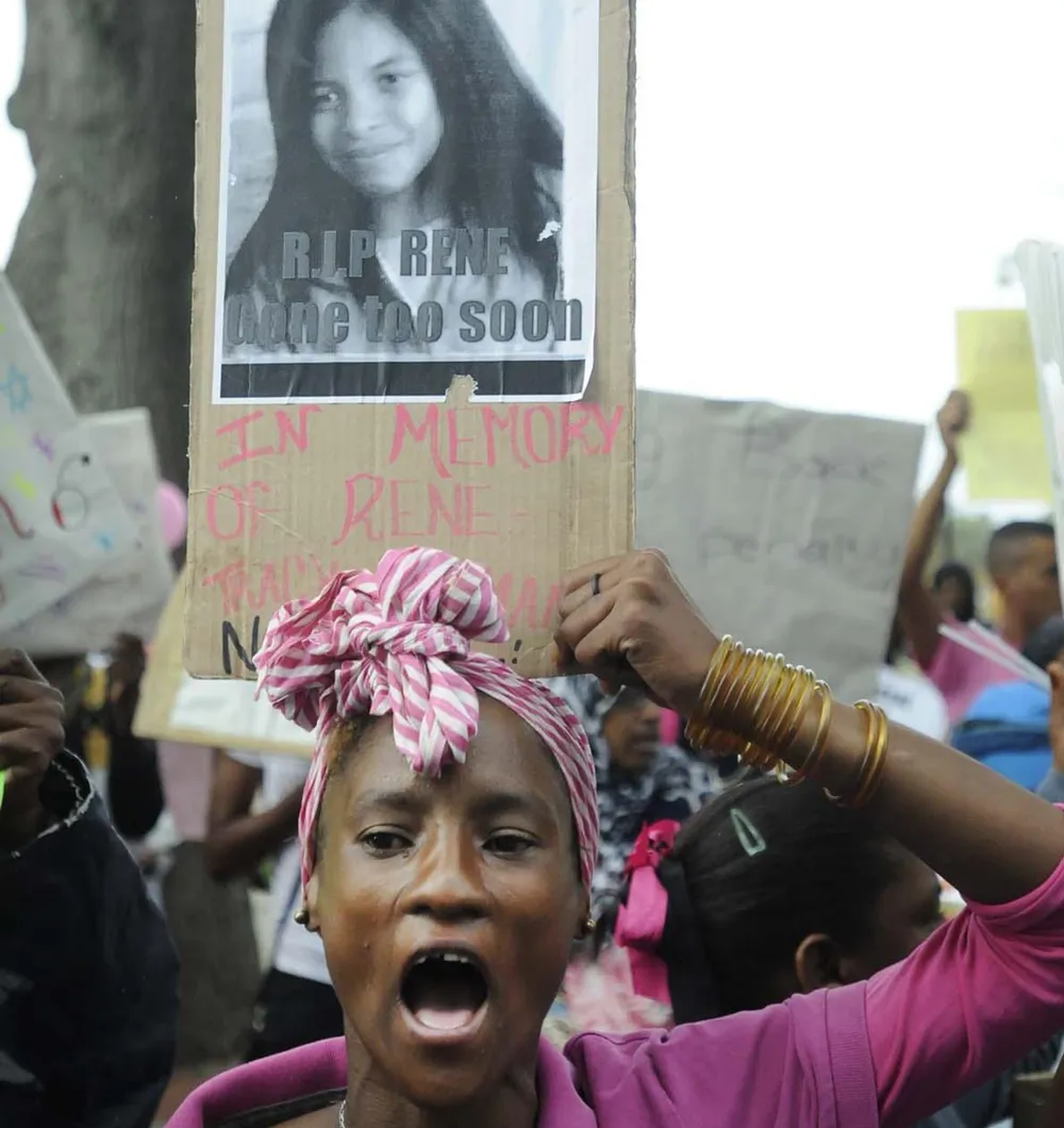 The young girl’s half-naked body was found wrapped in a mat in a Wendy house just metres from her home in St Agatha Street in Lavender Hill 11 days later.