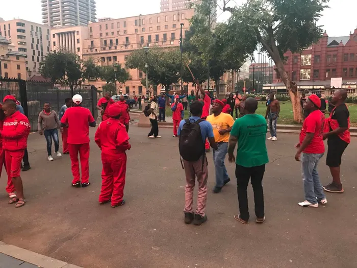 By 5am, the small group was singing and dancing around the Square – adjacent to National Treasury. A truck loaded with a huge public address system was playing loud music at the scene.