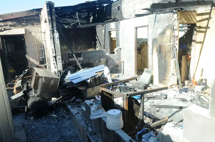 AFTERMATH: Skelms broke into an Elsies River family's storage Wendy house, then set it alight. Three properties and a Kia truck were destroyed AFTERMATH: Skelms broke into an Elsies River family's storage Wendy house, then set it alight. Three properties and a Kia truck were destroyed