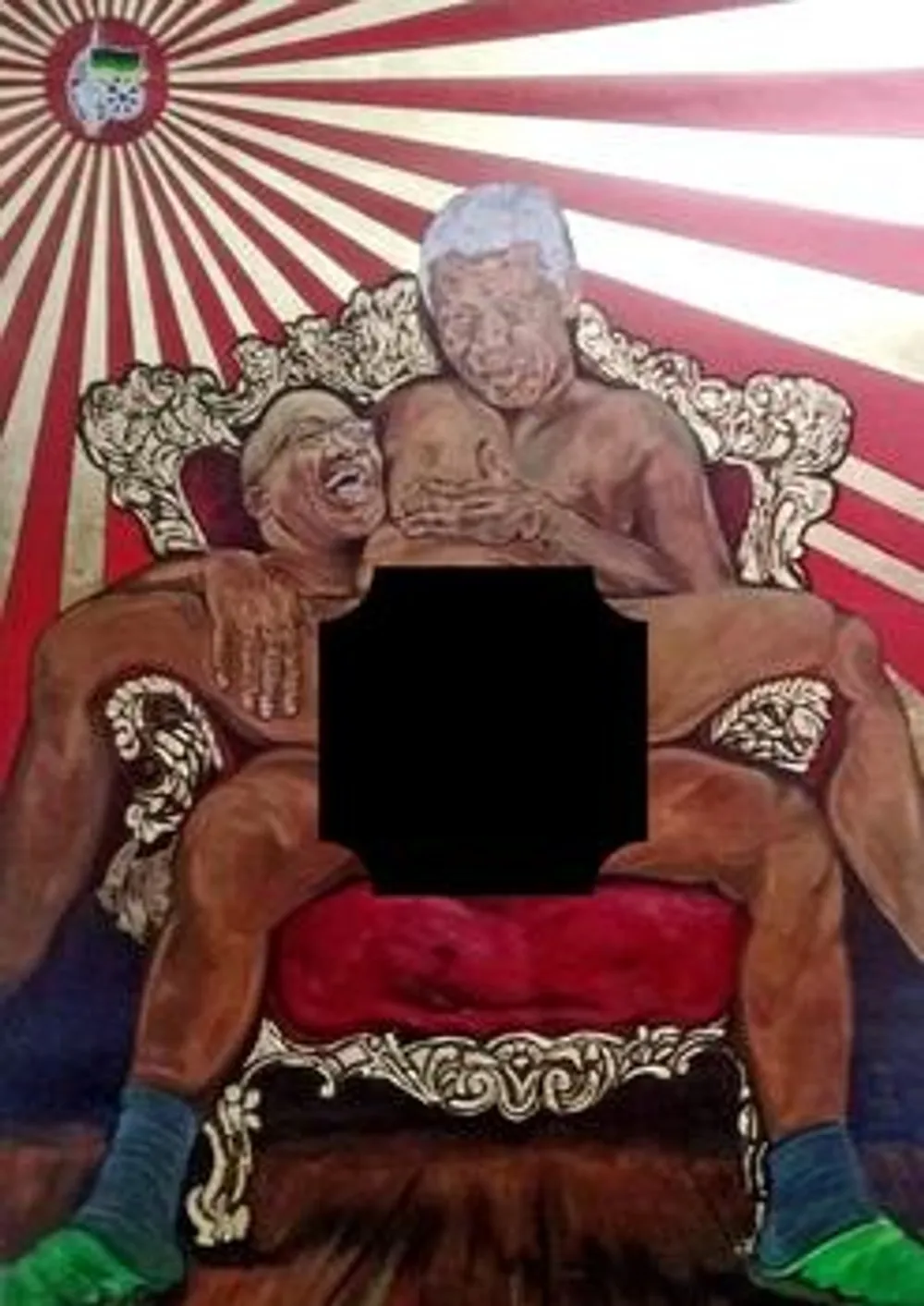 The painting by Mabulu, which portrays President Jacob Zuma in a sexual act with the late former President Nelson Mandela emerged on Thursday and caused a stir on social media. Mabulu titled his painting “Economy of Rape”.