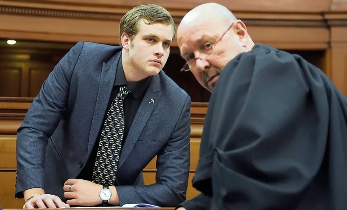 Henri van Breda consults his lawyer, Pieter Botha in the Western Cape High Court. CREDIT: Phando Jikelo/ANA Pictures Henri van Breda consults his lawyer, Pieter Botha in the Western Cape High Court. CREDIT: Phando Jikelo/ANA Pictures