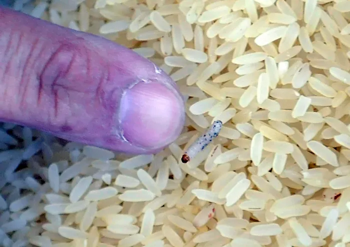 The Daily Voice visited Dawood’s business premises in Rylands and saw worms similar colour to the rice grains, crawling inside the sealed bags.