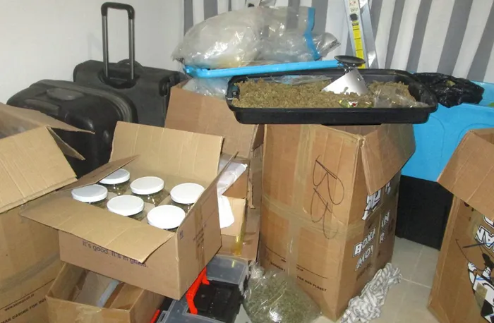 According to police, about R3 million worth of imported, dried hydroponic dagga was found stashed in large boxes and glass jars in the apartment.