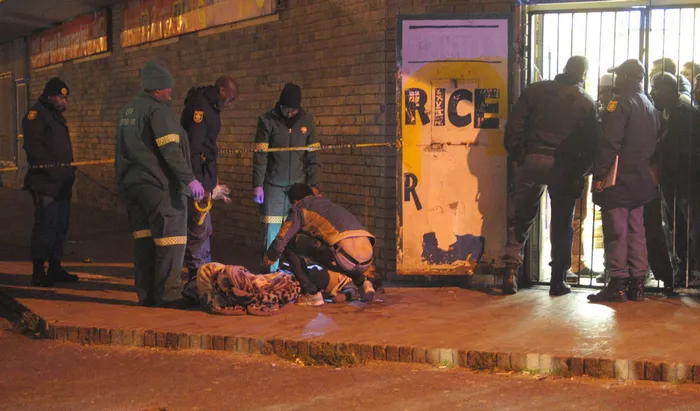 Shulail Kagee's body lies covered in Salberau Estate, Elsies. Photo: Leon Knipe Shulail Kagee's body lies covered in Salberau Estate, Elsies. Photo: Leon Knipe