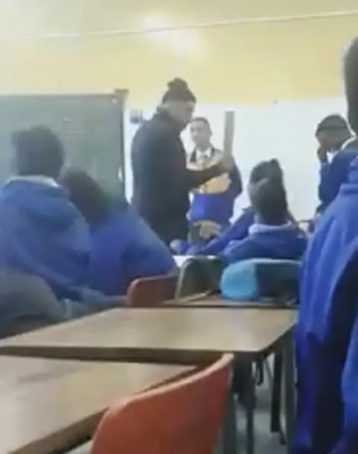 MIXED REACTIONS: A Steenberg High onnie is recorded giving a laaitie a pak slae during class MIXED REACTIONS: A Steenberg High onnie is recorded giving a laaitie a pak slae during class