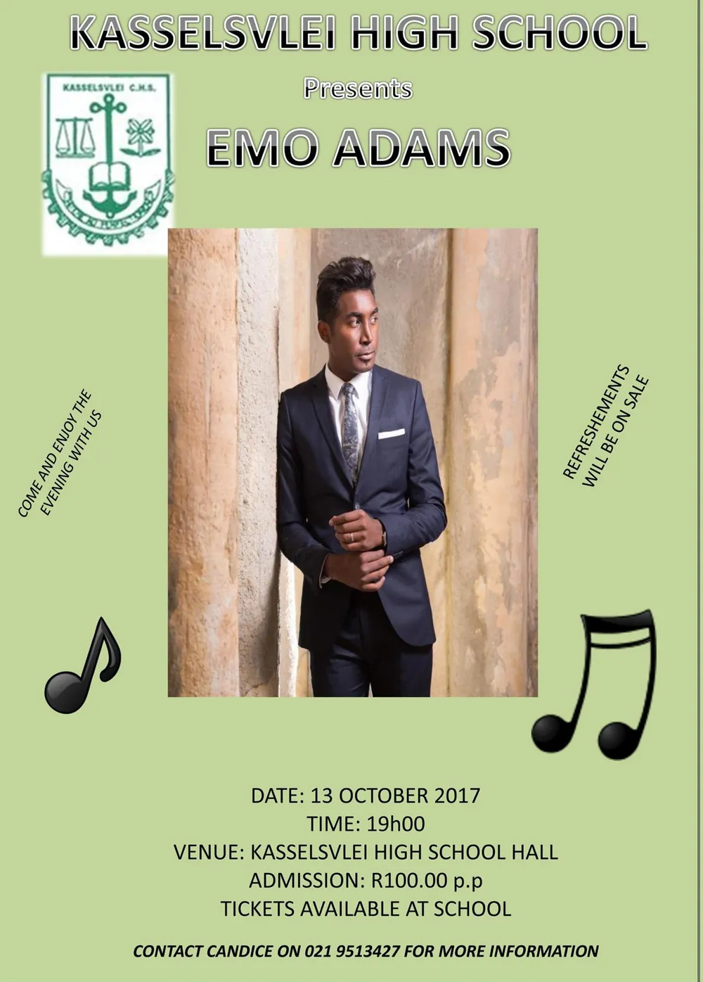 The management of Kasselsvlei Comprehensive High School in Bellville South will host a show featuring popular Cape Town entertainer, Emo Adams, in a bid to raise much-needed funds to safeguard the school.
