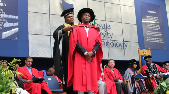 WELL DONE: The day he graduated as a Doctor of Engineering Lukhanyo Mekuto was in Bloemfontein to receive a Research Excellence Award for Next Generation Researchers from the National Research Foundation. WELL DONE: The day he graduated as a Doctor of Engineering Lukhanyo Mekuto was in Bloemfontein to receive a Research Excellence Award for Next Generation Researchers from the National Research Foundation.