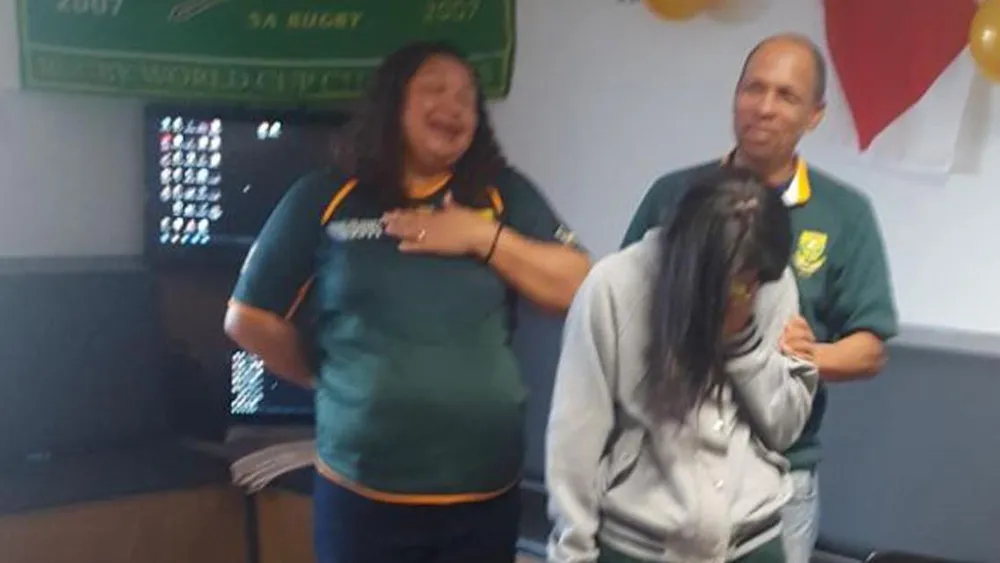“Ek hoor jy het ’n groot Springbok partytjie vandag, ek hoop almal daag op met hulle Springbok truie. Dankie dat jy die Springbokke so mooi onderstuen. Ek hoop dis ’n wonderlike dag vir jou en dat jy ’n wonderlike jaar gaan hê.