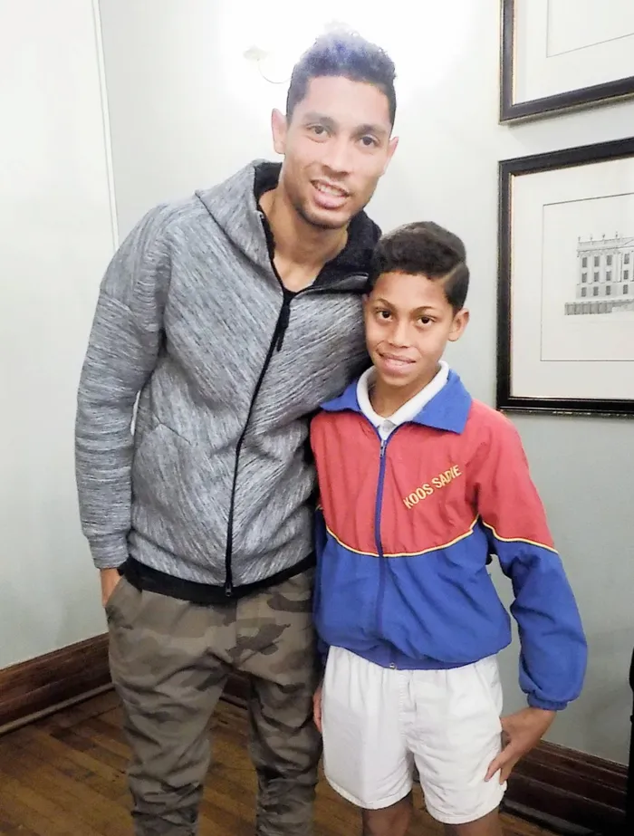 Chandler van Steer, 13, with his hero Wayde van Niekerk. Picture: Rusana Philander Chandler van Steer, 13, with his hero Wayde van Niekerk. Picture: Rusana Philander